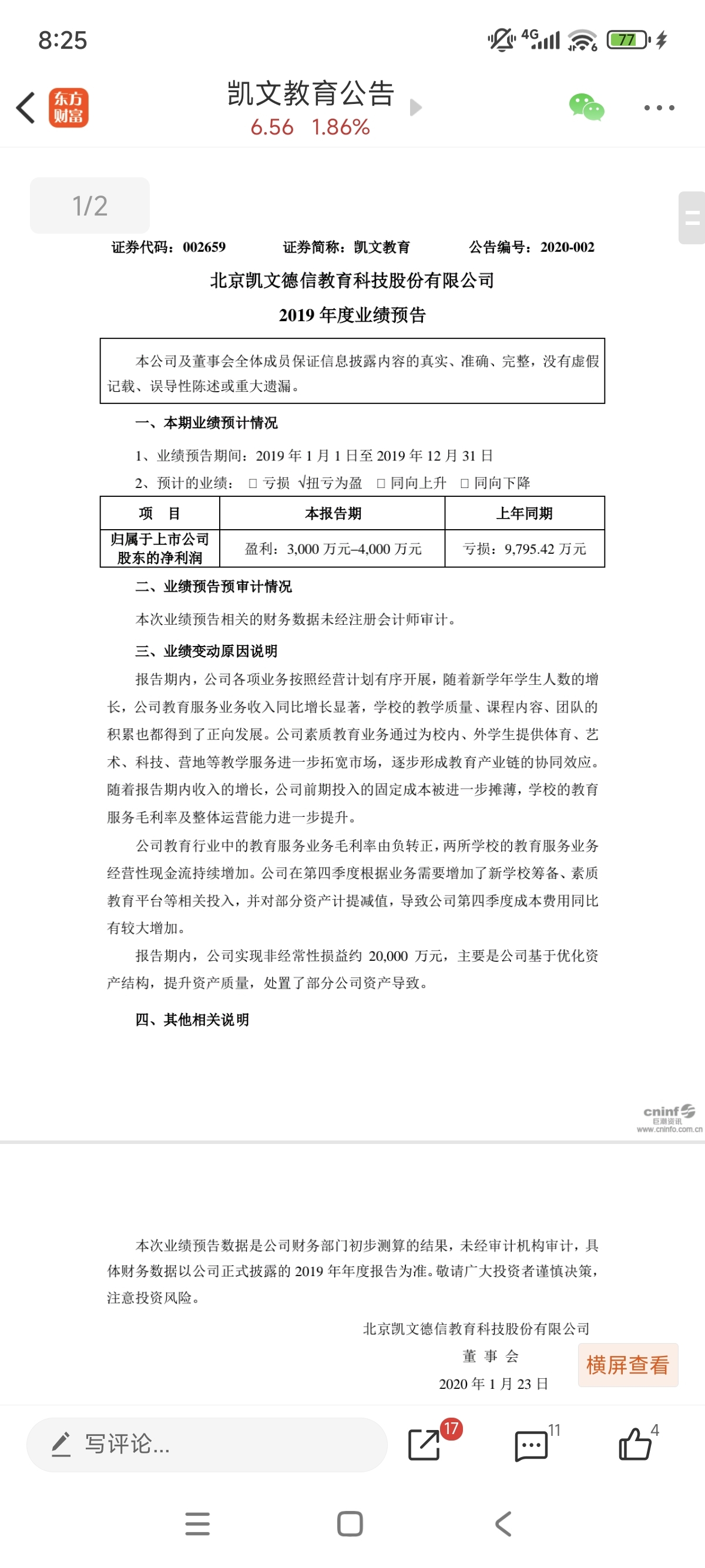 $凯文教育(SZ002659)$ 上一次这玩意23号发的,现在还没发,所以今年没戏么?
