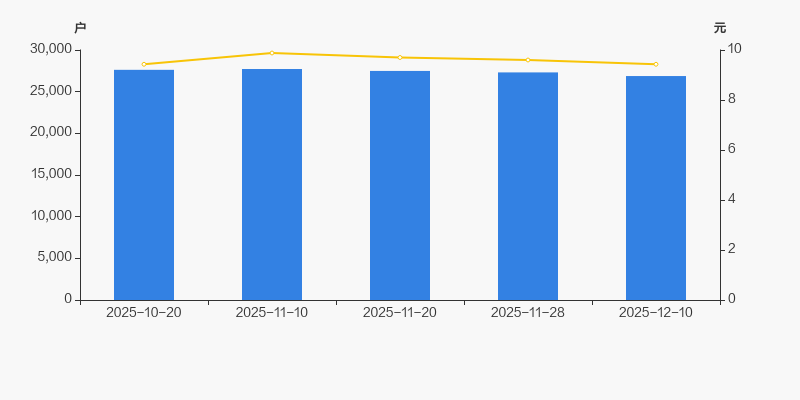 截至2025年12月10日,公司最新总股本为3.33亿股,其中流通股本为3.15亿股。户均持有流通股数量由上期的1.15万股上升至1.17万股,户均流通市值11.04万元。