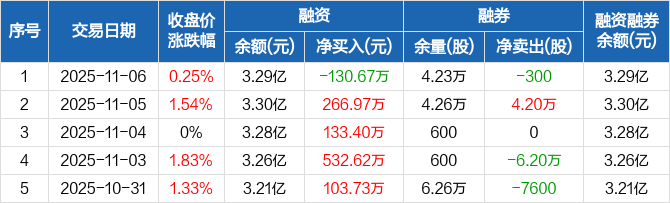 峰璟股份:融资净偿还130.67万元,融资余额3.29亿元(11-06)