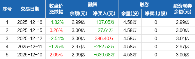 峰璟股份:融资净偿还107.05万元,融资余额2.99亿元(12-16)