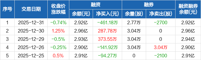 峰璟股份:融资净偿还461.18万元,融资余额2.92亿元(12-31)