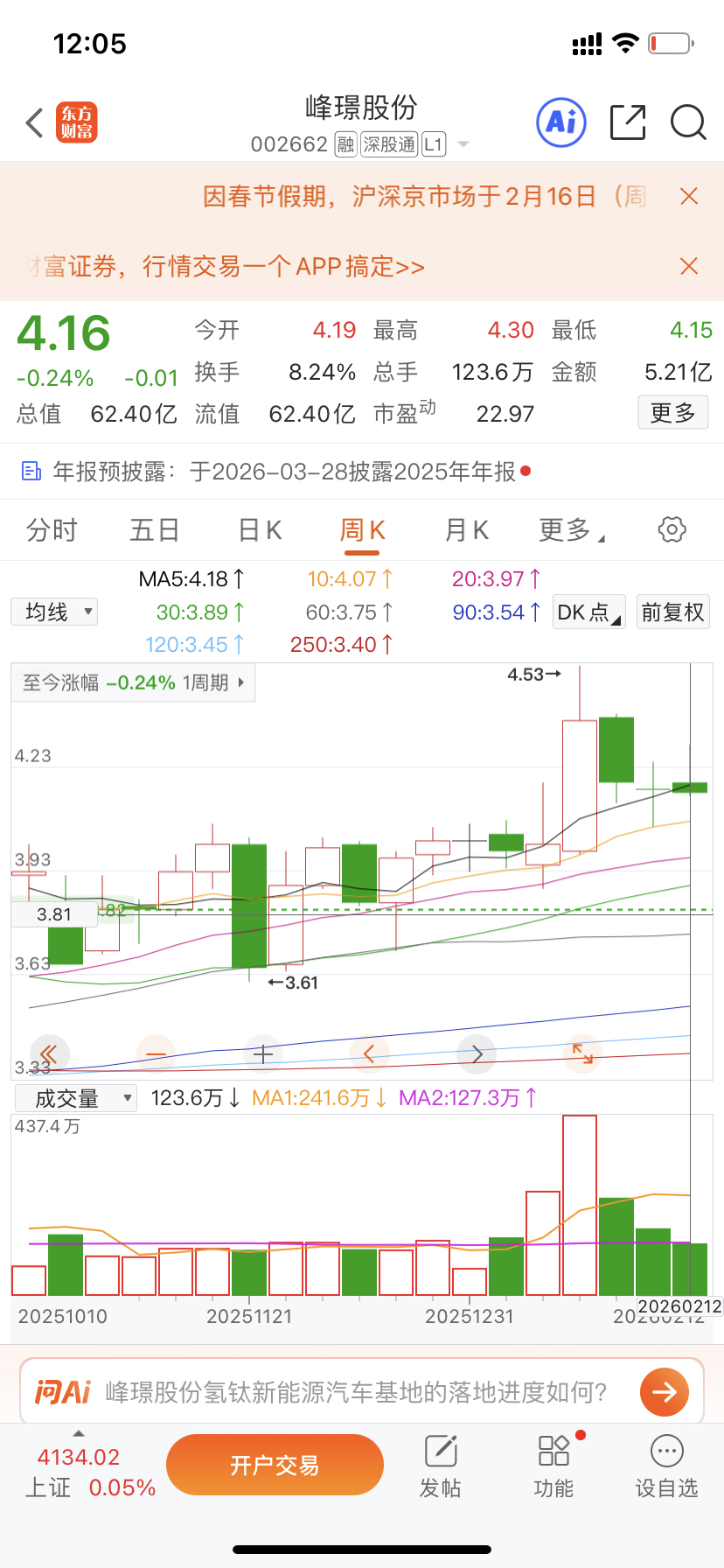 $峰璟股份(SZ002662)$ 明天,来个红。差几分钱,周线红。