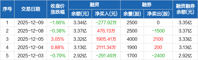 信质集团:融资净偿还277.92万元,融资余额3.34亿元(12-09)