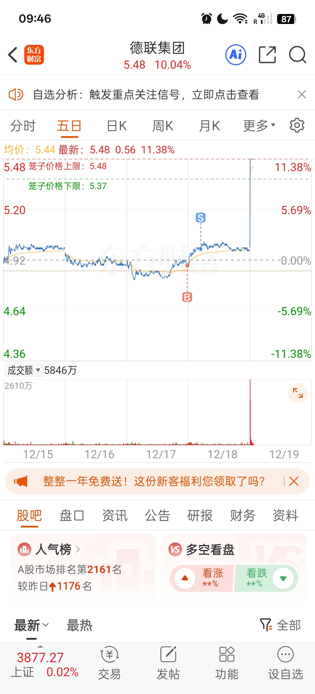 $德联集团(SZ002666)$ 昨天卖了,反正我的大腿已经拍段一条