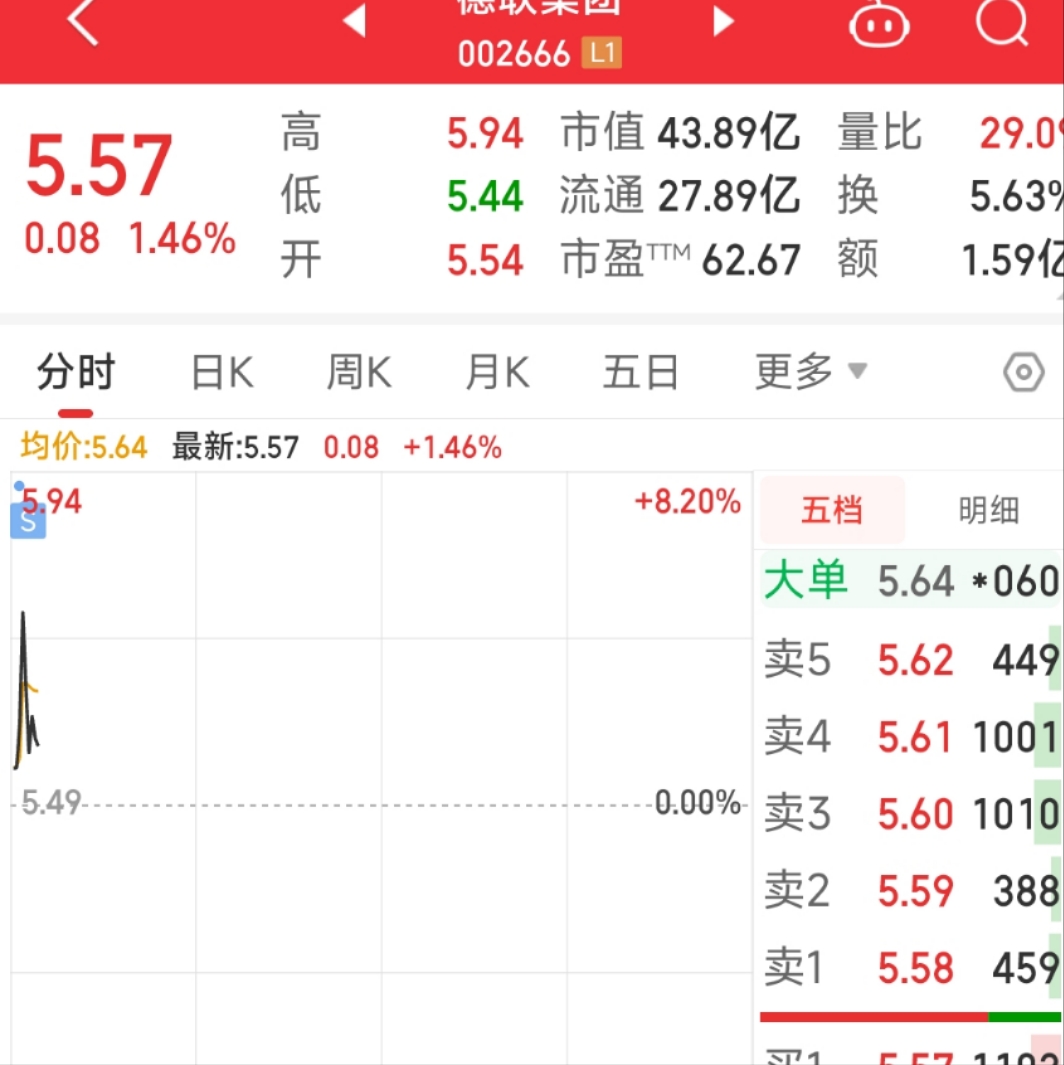 $德联集团(SZ002666)$ 接的爽吗,韭们?