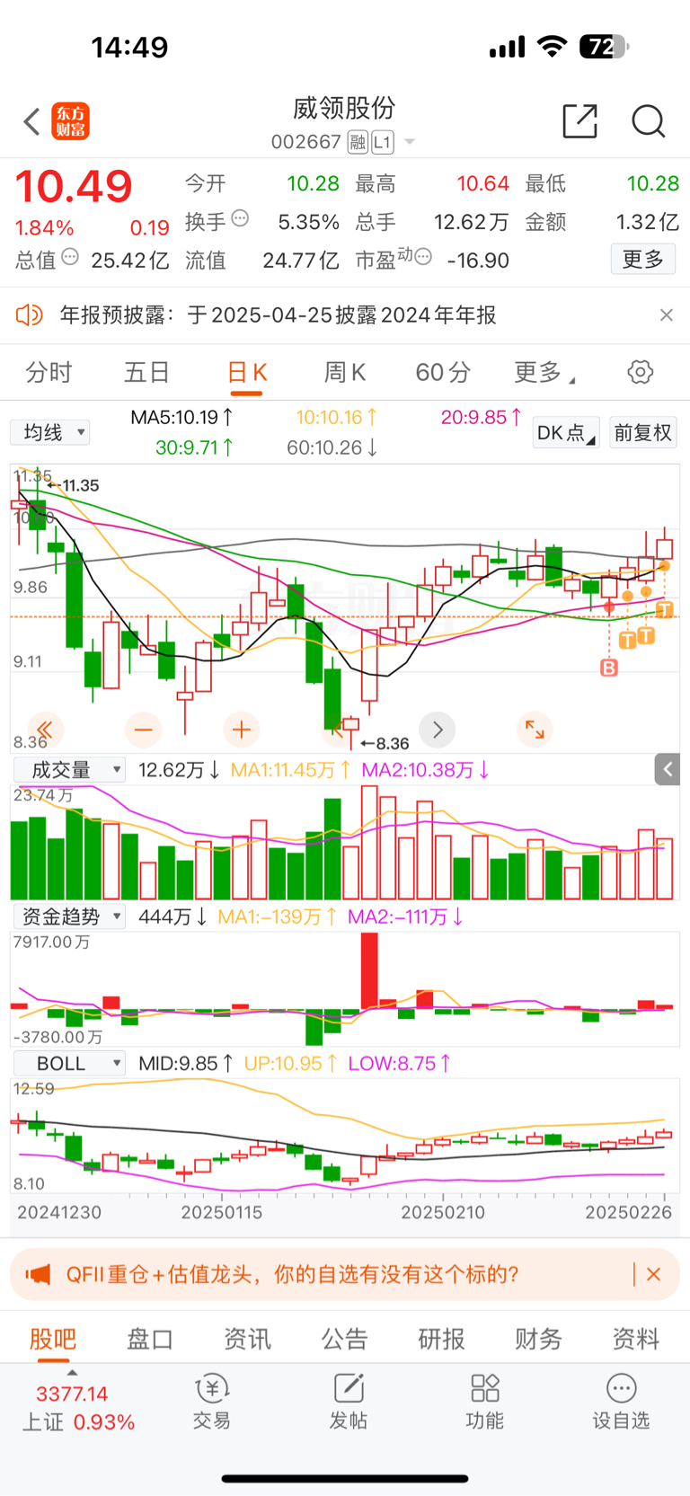 $威领股份(SZ002667)$ 明天我想赚10个点跑,每天两个点不过分吧