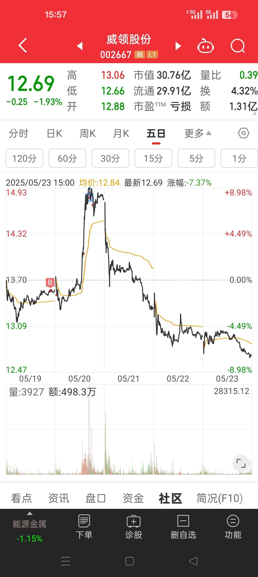 $威领股份(SZ002667)$ 我都不理解我本来走了 怎么又脑子一热 赌他回封 14.80接回来了