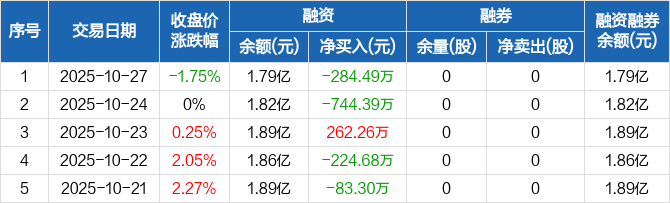 威领股份:融资净偿还284.49万元,融资余额1.79亿元(10-27)
