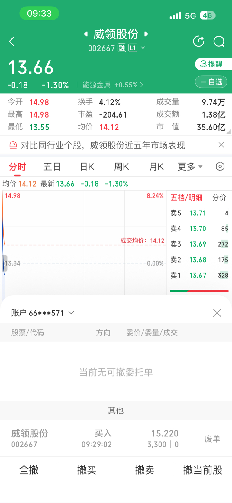 $威领股份(SZ002667)$ 开盘八个多点 我填涨停买怎么是废单呢?废的好啊
