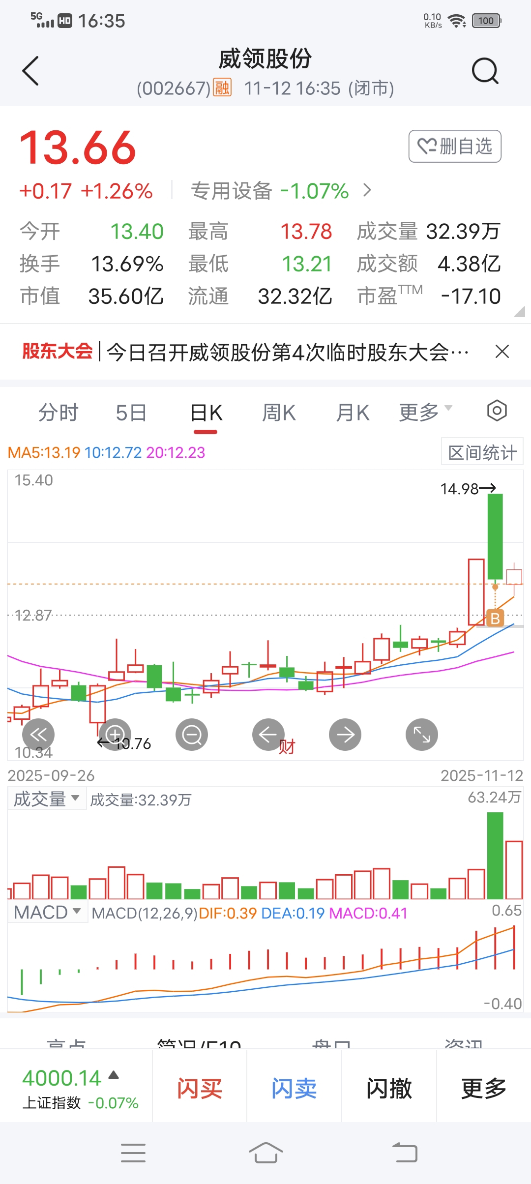 $威领股份(SZ002667)$ 兄弟们,昨天尾盘抄底,今天感觉赚的有点少没出来,明天还有机会吗?