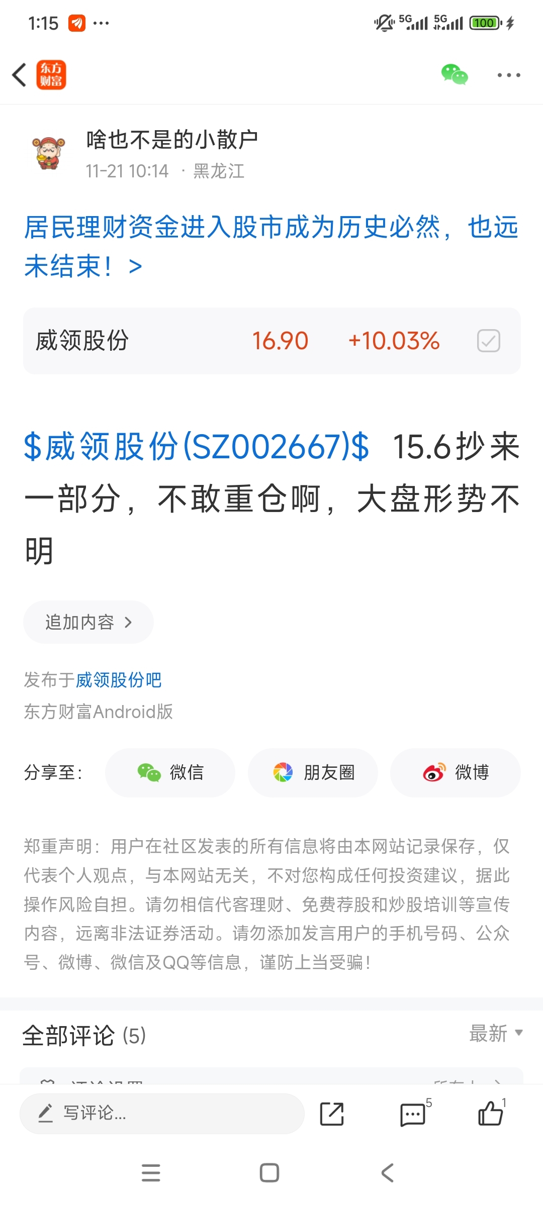 $威领股份(SZ002667)$ 贪念啊,涨停时候觉得买少了,但是面对周五大盘暴跌真是不敢下手了。