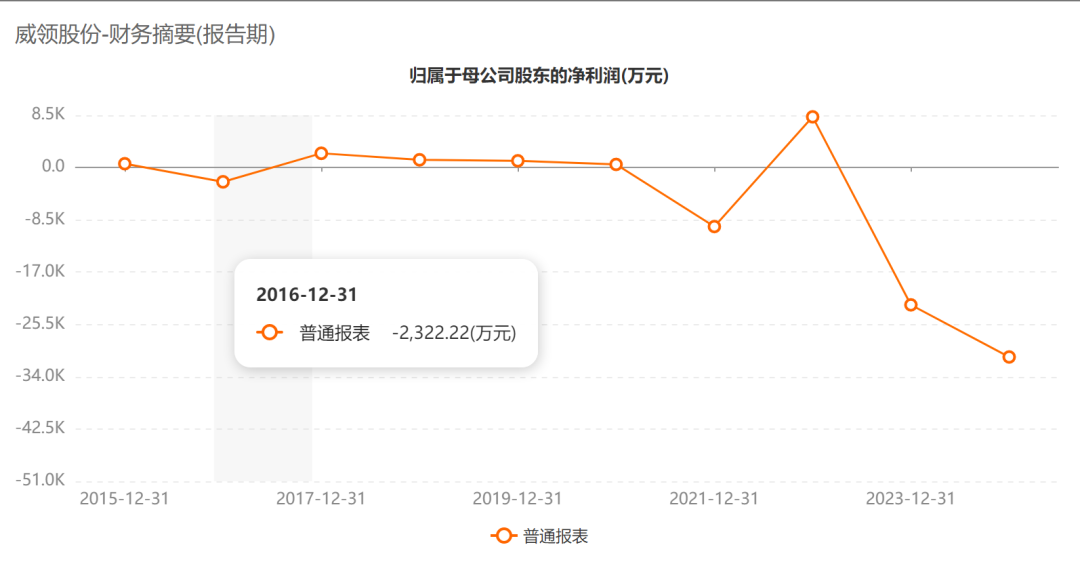 转型锂电后,威领股份实现了营收大幅增长,但受行业周期、竞争压力以及锂价波动等因素共同作用,净利润表现并不稳定。2021年至今,除2022年盈利外,其他年份均告亏损。2023年至2024年,威领股份归母净利润分别亏损2.23亿元、亏损3.08亿元。