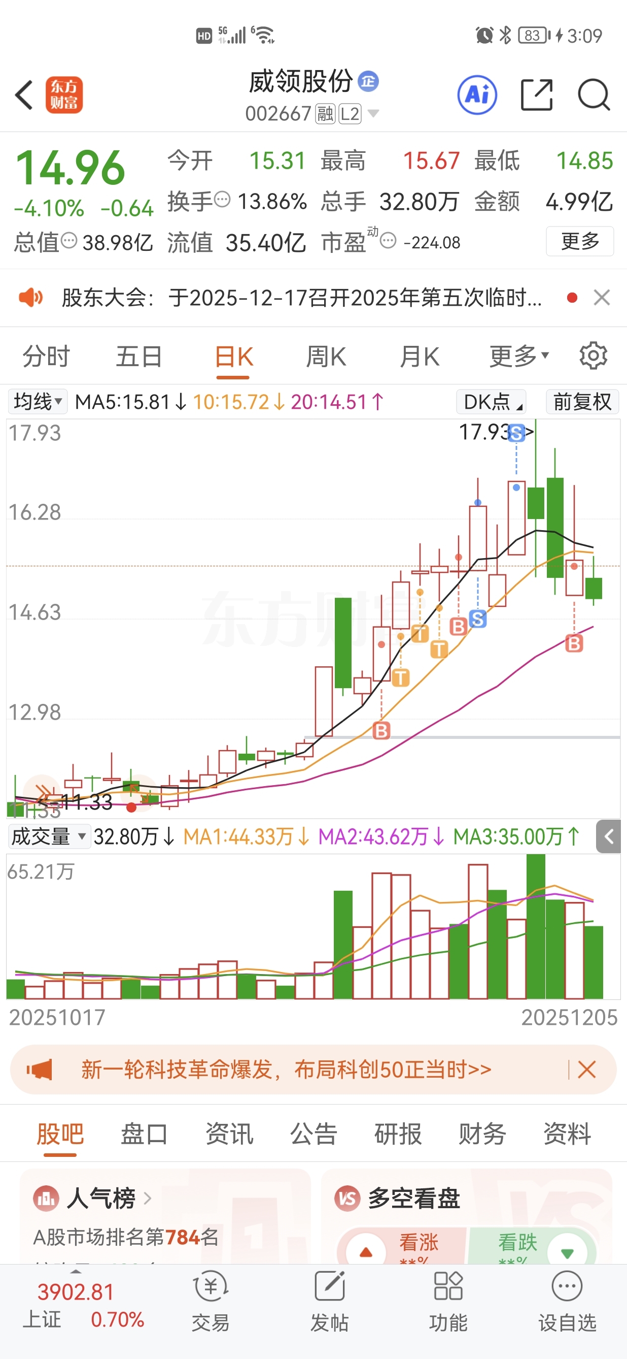 $威领股份(SZ002667)$ 难道要我把之前赚的还给你
