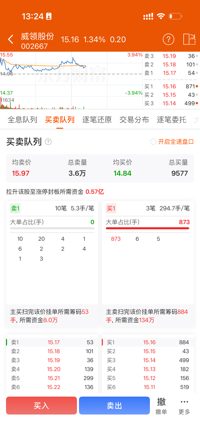 $威领股份(SZ002667)$ 毫无压力呀