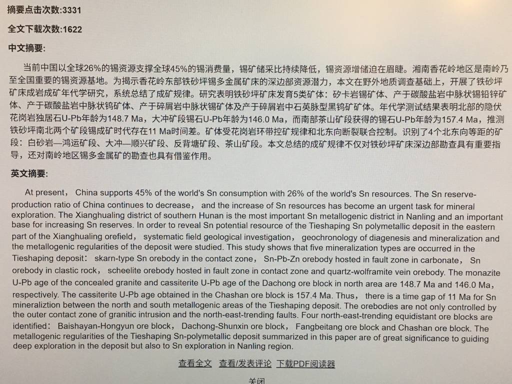 在百度搜到一篇名字为《湘南香花岭矿田铁砂坪锡多金属矿床U-Pb年代学及成矿规律》