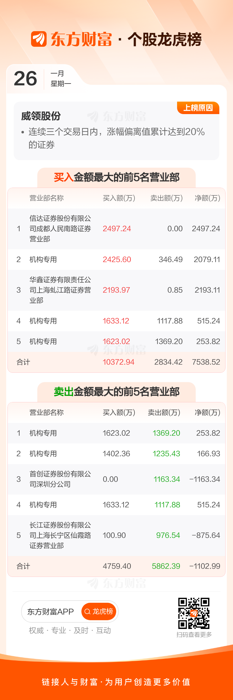 威领股份(002667)龙虎榜数据(01-26)