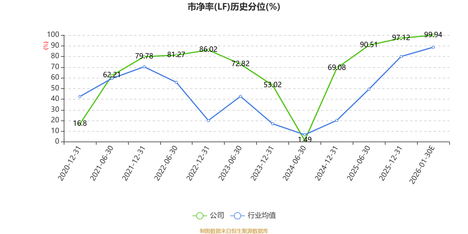 市盈率、市净率为负时,不显示当期分位数,会导致折线图中断。