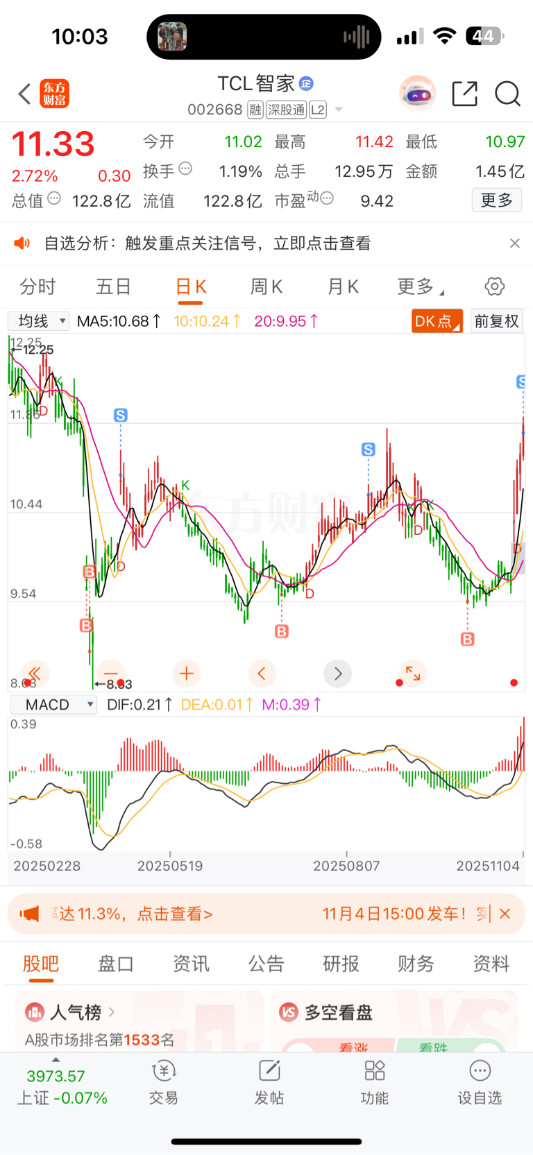 $TCL智家(SZ002668)$ 完美结束,等我回来