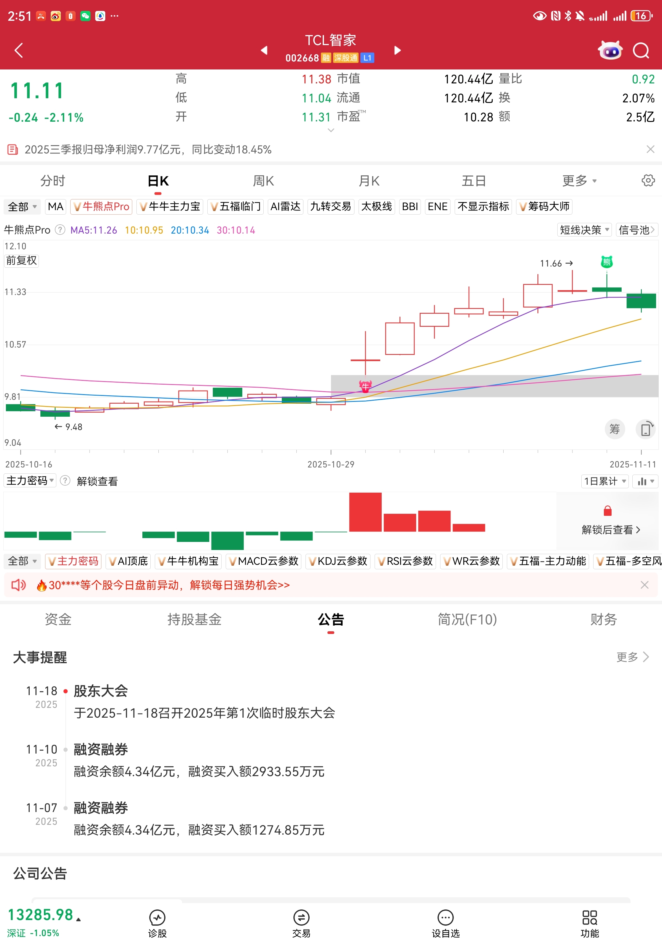 $TCL智家(SZ002668)$ 熊出没,要小心了,等待牛的指标出现再进场。