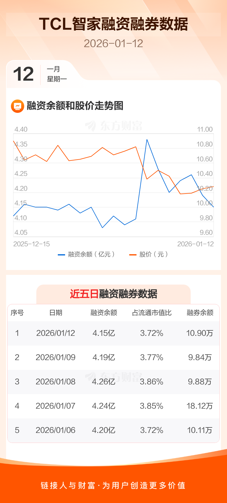 TCL智家:融资净偿还425.8万元,融资余额4.15亿元