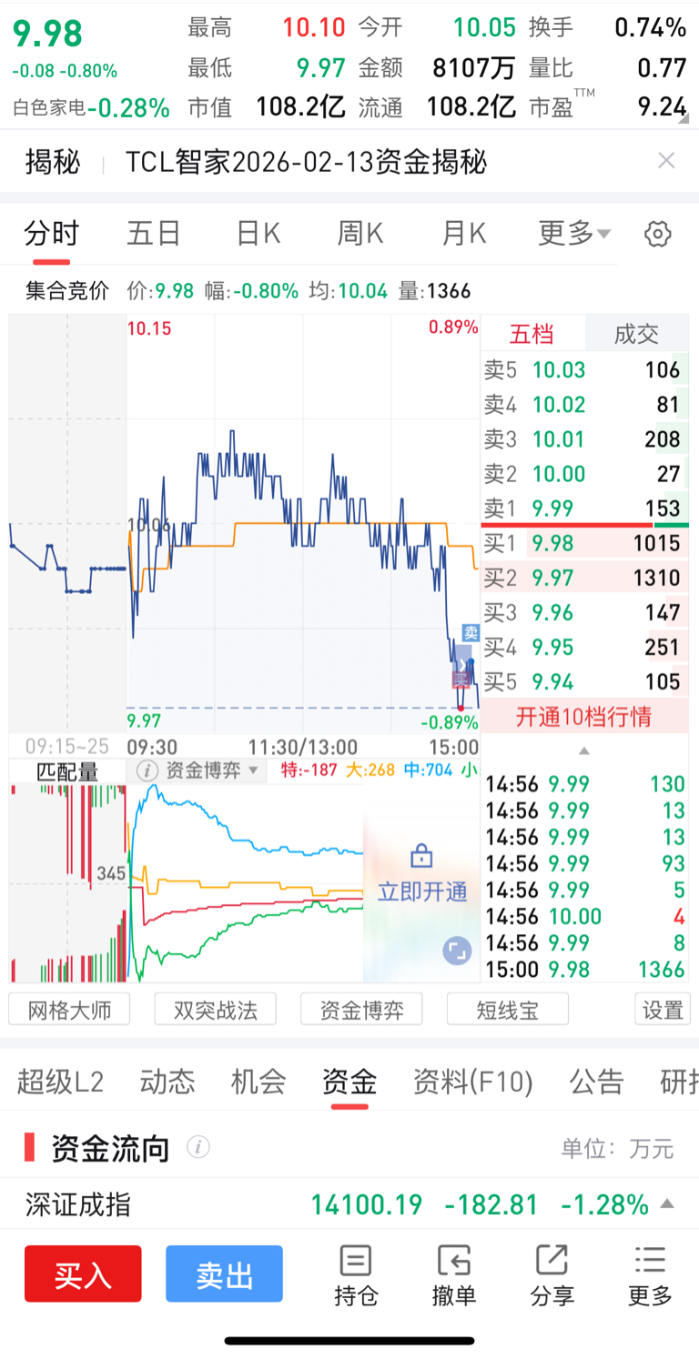 $TCL智家(SZ002668)$ 挂跌1个点都买不到,真勾,买到了我就踢,两分钱都踢,不在乎手续费,就是讨厌它