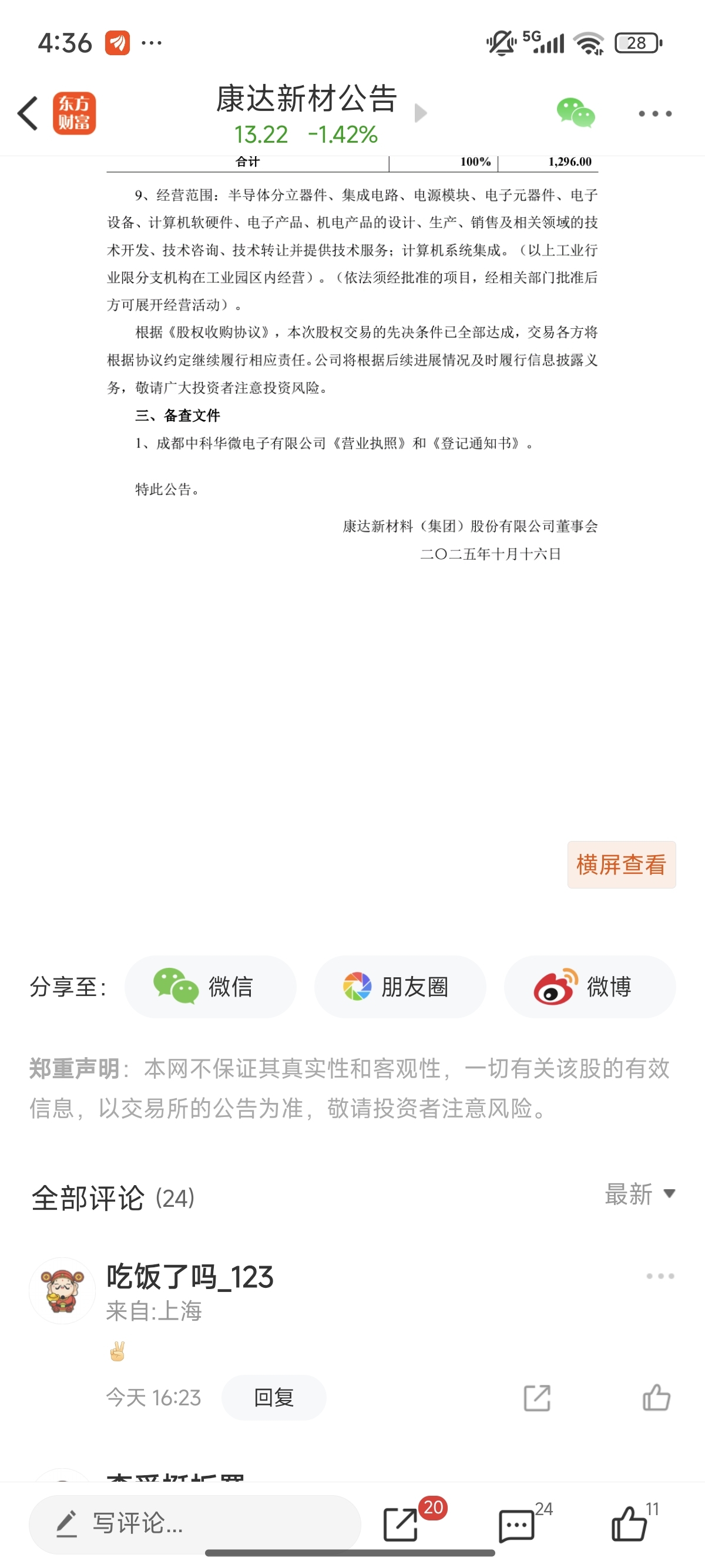 $康达新材(SZ002669)$ 16日的公告,为什么会有15日的评论?