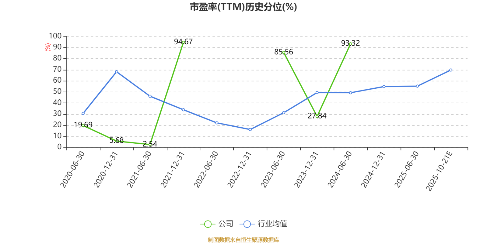 以本次披露业绩预告均值计算,公司近年市盈率(TTM)图如下所示: