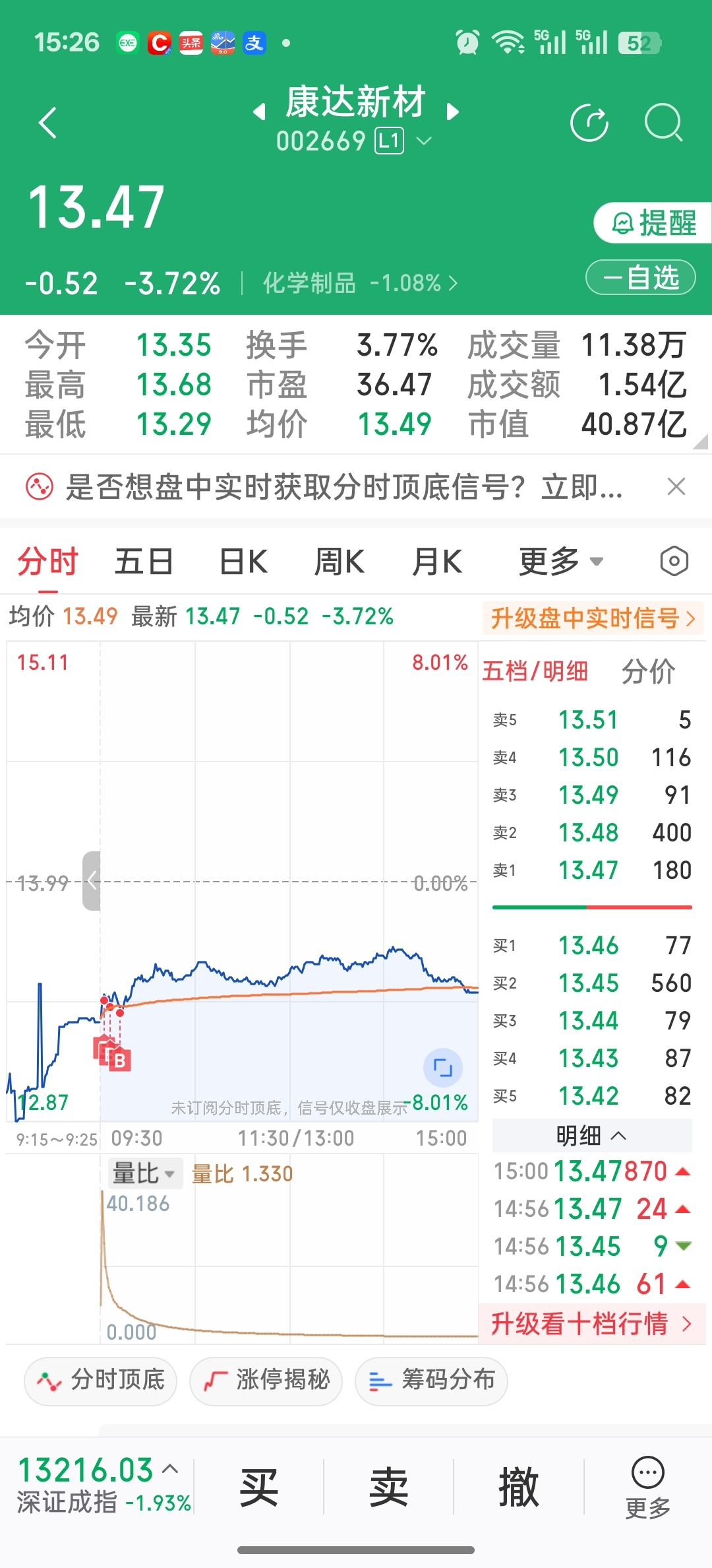$康达新材(SZ002669)$ 各位兄弟姐妹:今天必须加仓!可惜没有跌停,不然满仓干!越是恐慌越应该买入!