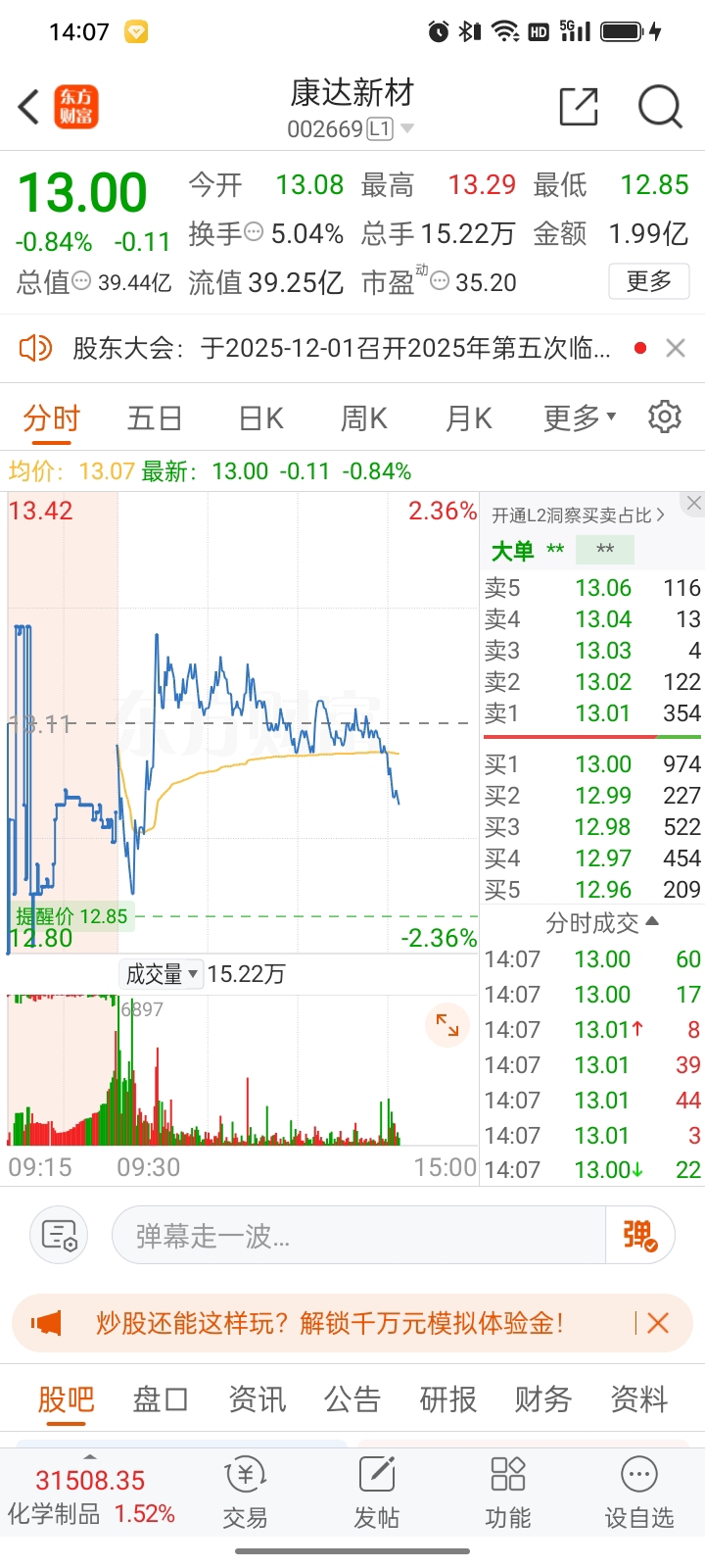 $康达新材(SZ002669)$ 急涨慢跌是出货