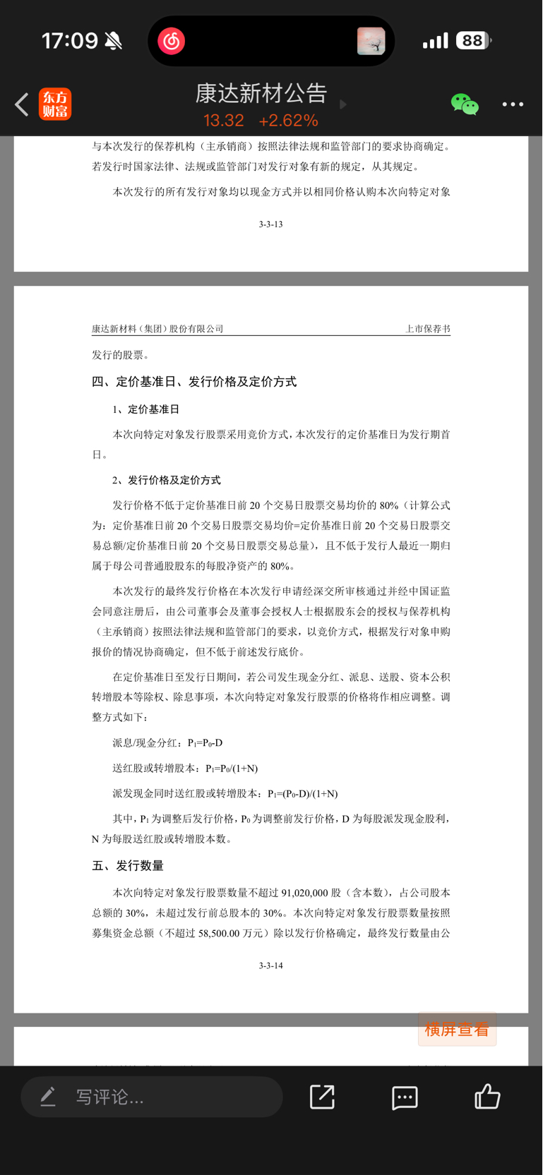 $康达新材(SZ002669)$ 本次采用竞价方式,定价为发行期首日,很不错了,我觉得是利好