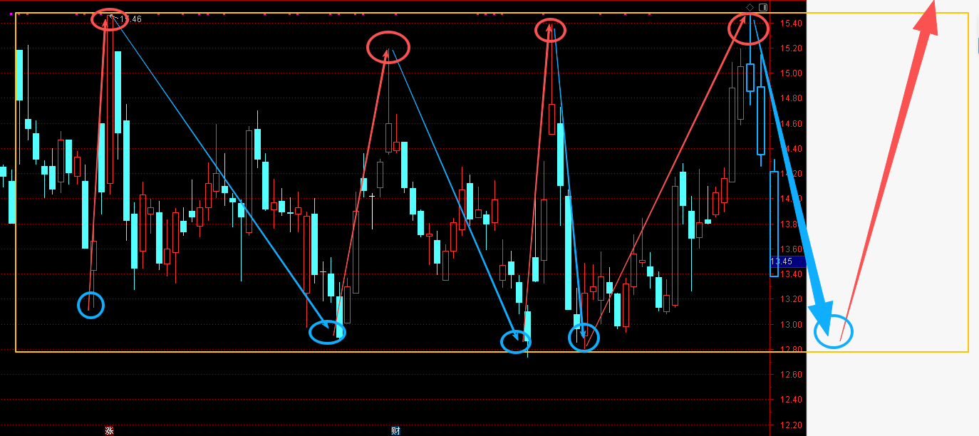 明天有种预感,看图就明白了(各位别当真)明天触前高后,继续在箱体内震荡,最后一次
