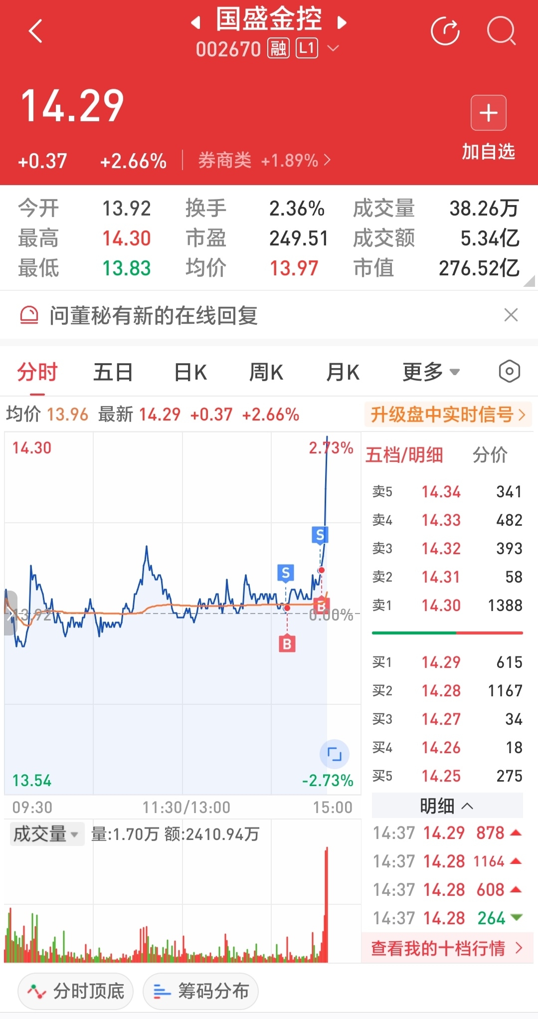 $国盛金控(SZ002670)$ 大哥你别涨了了,我手欠卖飞了,少涨点我明天买回来。