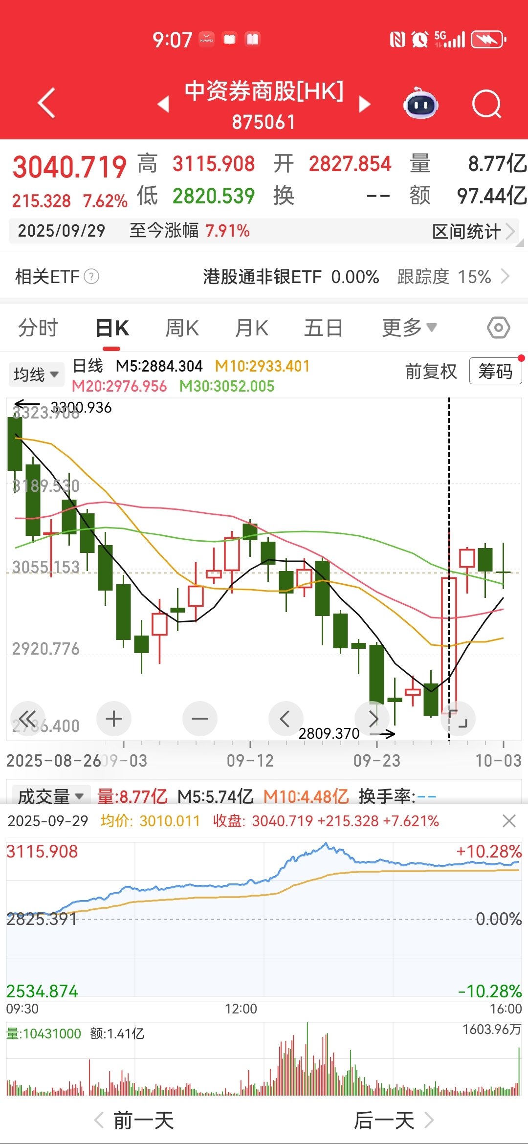 港股证券高位横盘,跌也跌不下去,感觉节前三个交易日要突破了