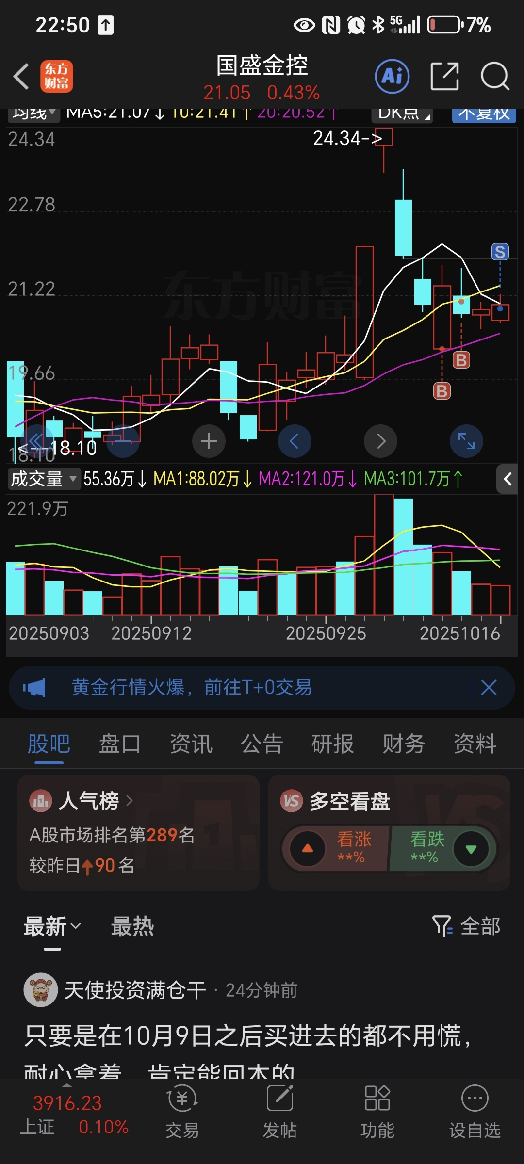 $国盛金控(SZ002670)$ 我卖了,你可以涨了