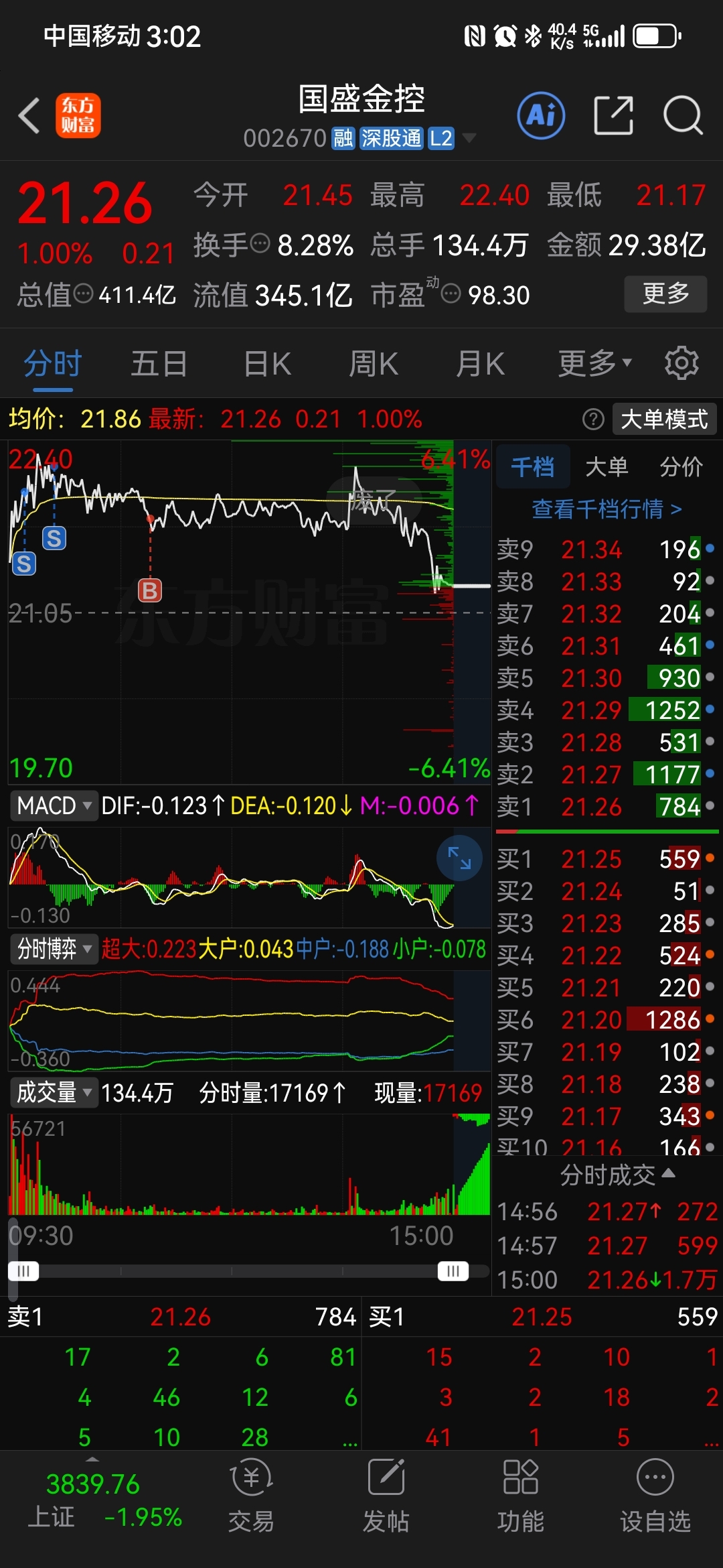$国盛金控(SZ002670)$ 睡觉挂的22.3出,起床天塌了