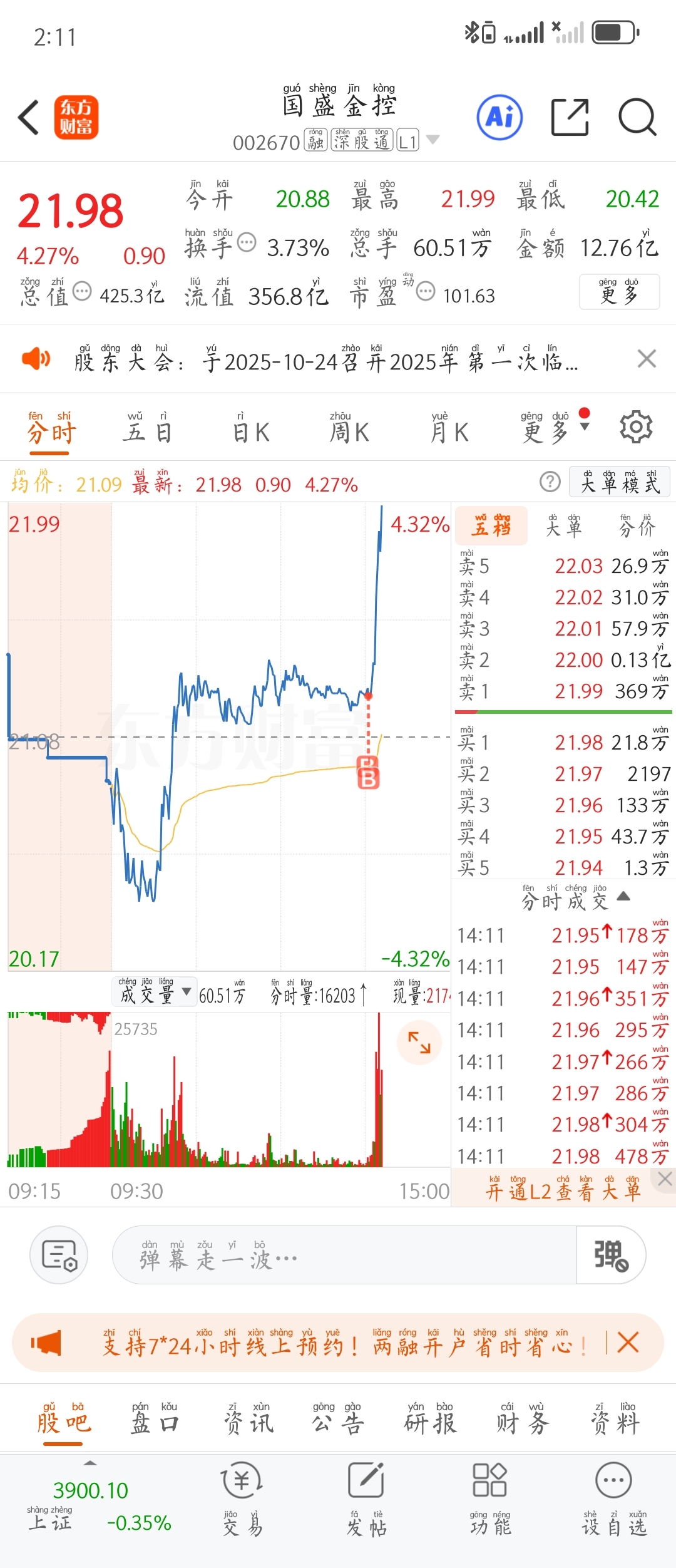 $国盛金控(SZ002670)$