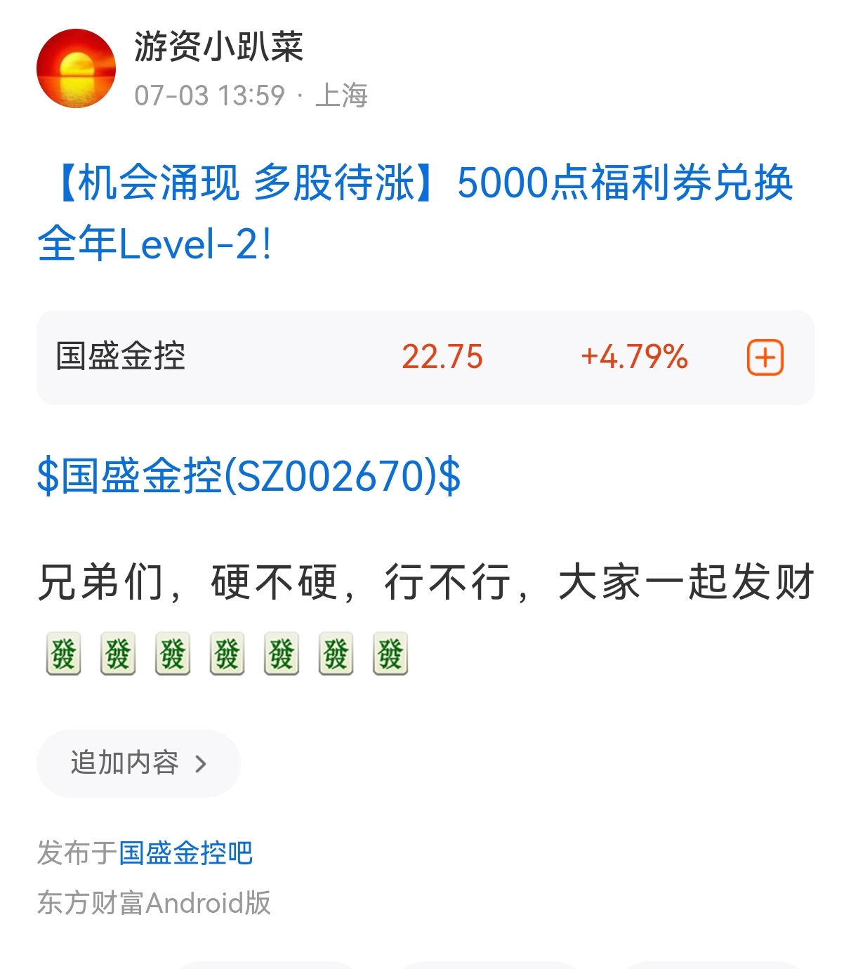 温馨提示: 1.根据《证券法》规定,禁止编造、传播虚假信息或者误导性信息,扰乱证券市场;2.用户在本社区发表的所有资料、言论等仅代表个人观点,与本网站立场无关,不对您构成任何投资建议。用户应基于自己的独立判断,自行决定证券投资并承担相应风险。《东方财富社区管理规定》