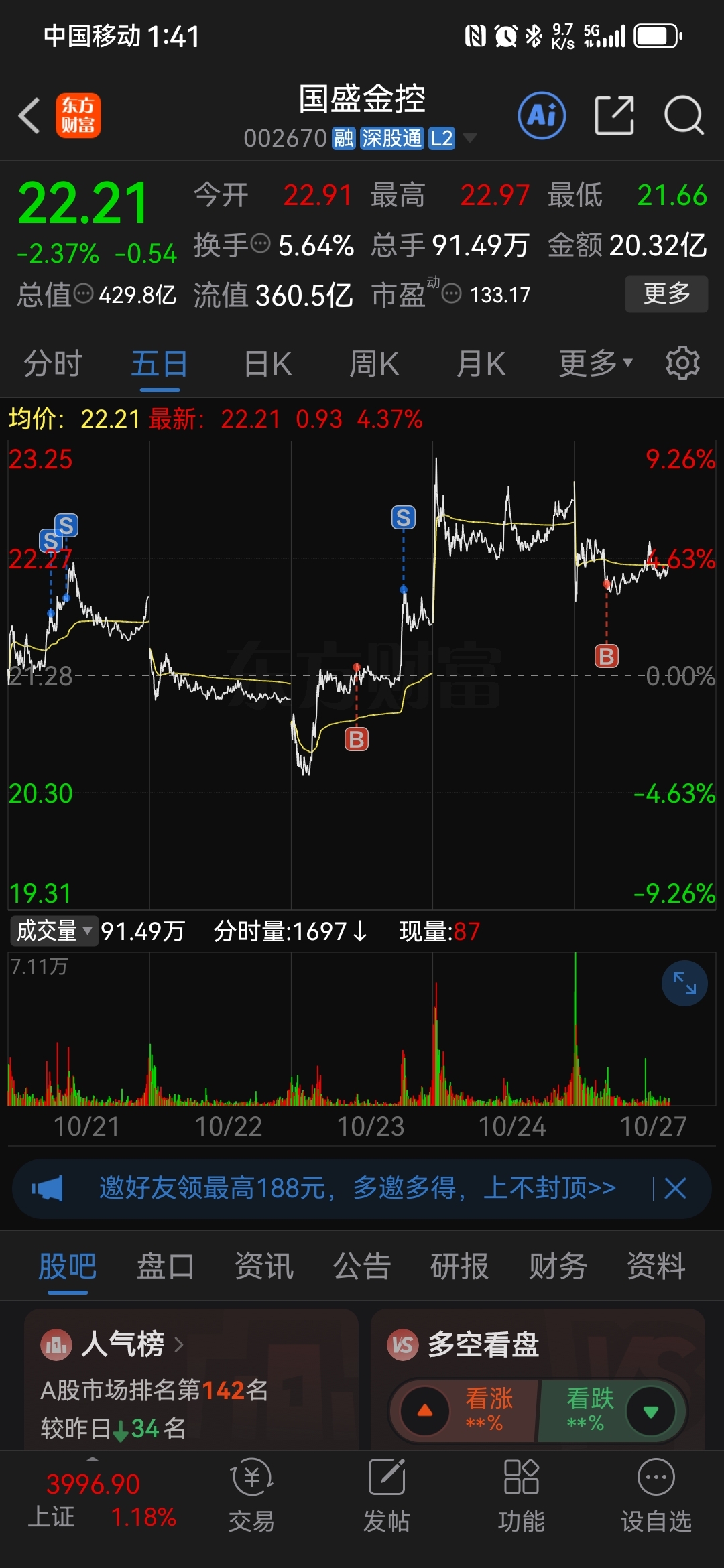 温馨提示: 1.根据《证券法》规定,禁止编造、传播虚假信息或者误导性信息,扰乱证券市场;2.用户在本社区发表的所有资料、言论等仅代表个人观点,与本网站立场无关,不对您构成任何投资建议。用户应基于自己的独立判断,自行决定证券投资并承担相应风险。《东方财富社区管理规定》