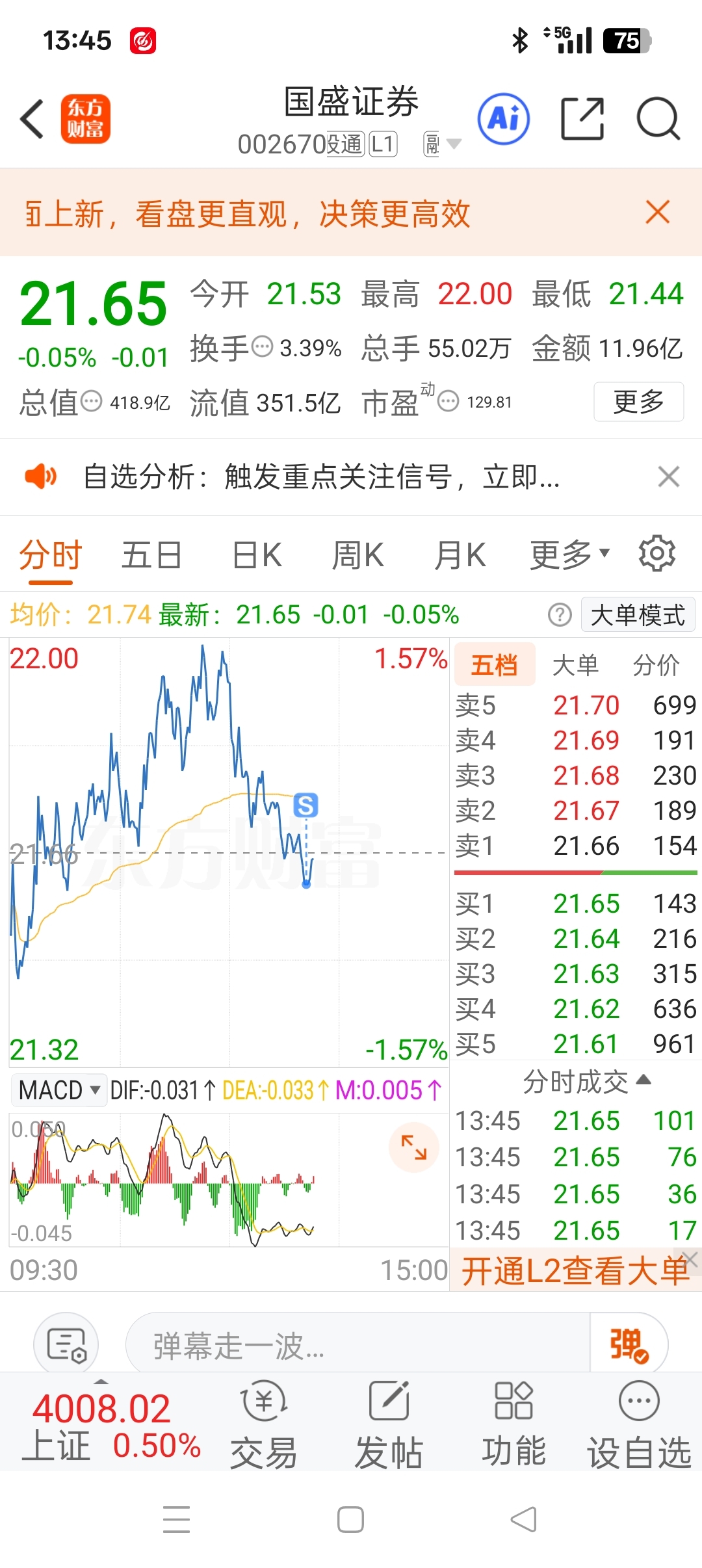 $国盛证券(SZ002670)$ 走了,这么好的行情,总是倒数。