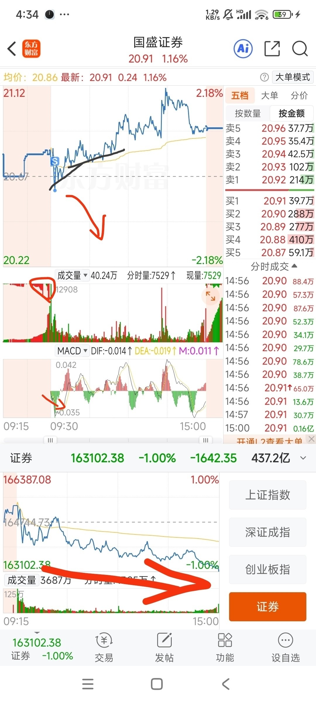 板块高开后一路下行回调,它早上开盘也是高开,随后由强转弱,我以为它会跟随板块,按道理它如果继续下跌还有一个台阶的空间,我卖出抢跑的时候是撤单好几次才卖掉的,刚卖在最低点它就反弹上去了,今天算是被诱空了。从集合竞价来看,今天是有买单挂出来的,可不知道它是低吸的买单还是护盘的买单,对走势能起到多大的效果?如果一开始就想卖,macd一开始就表现出空头信号,可以早跑而不用等最低点去抢跑。还在想开盘后它往上突破不了被平均线压制的时候,它随后又由弱转强了。