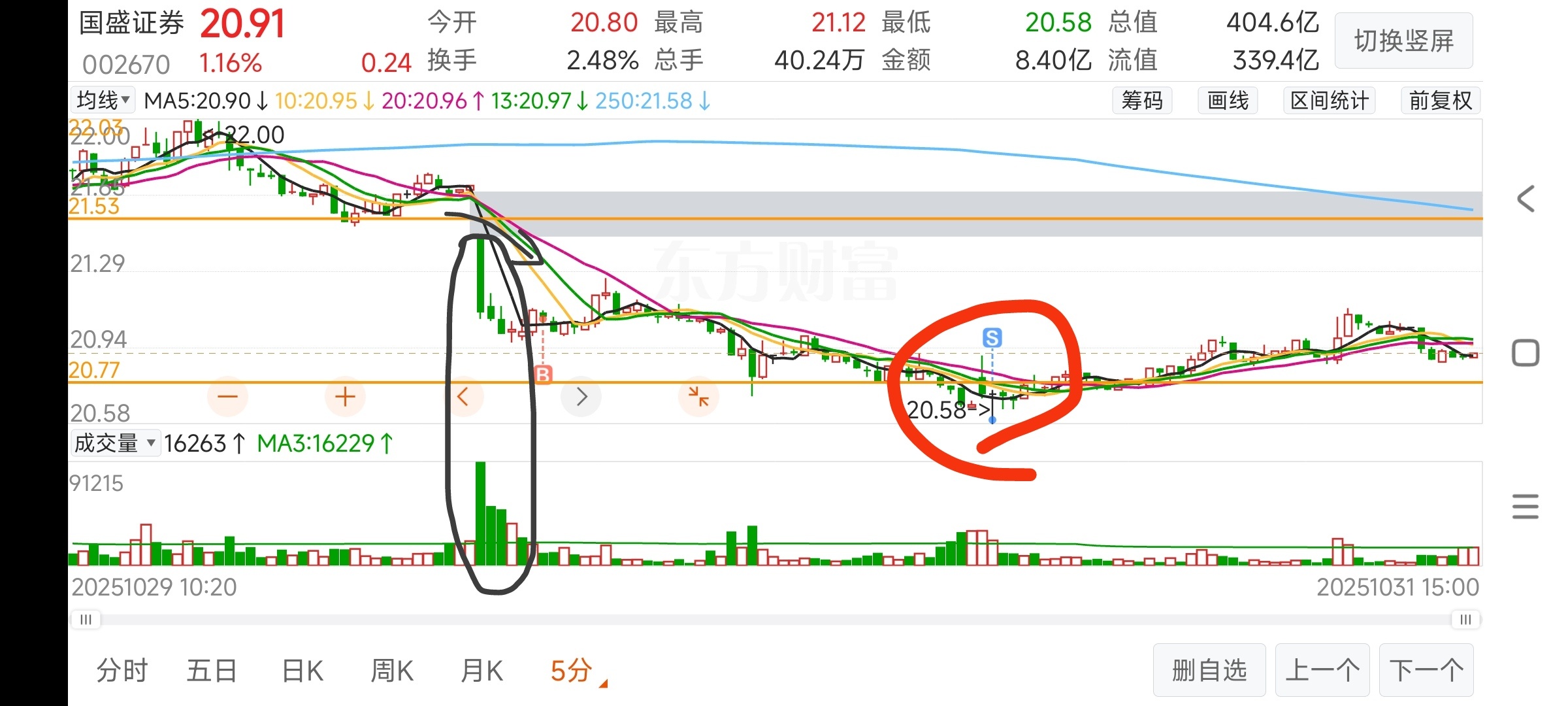 卖点相比买点,这里除了5分钟级别的支撑还有日线级别的支撑,买入位置的前方是刚从高位掉下来,一根放量大阴线、抛压还是大的,低吸过早了。
