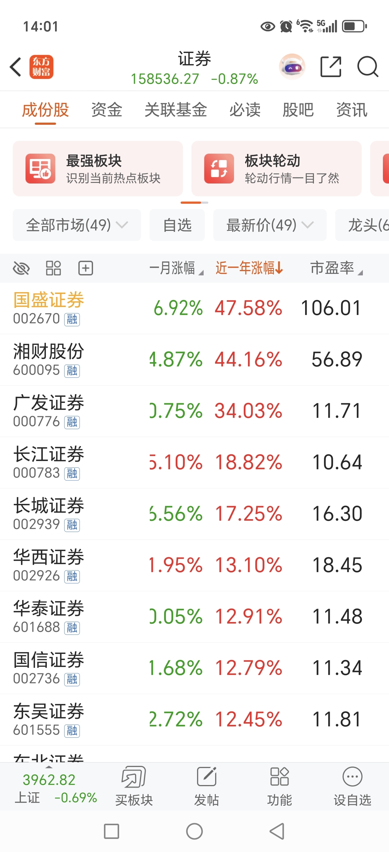$国盛证券(SZ002670)$ 不管是看近一年涨幅还是今年涨幅,国盛都排在前面,也就意味着还有的跌的。