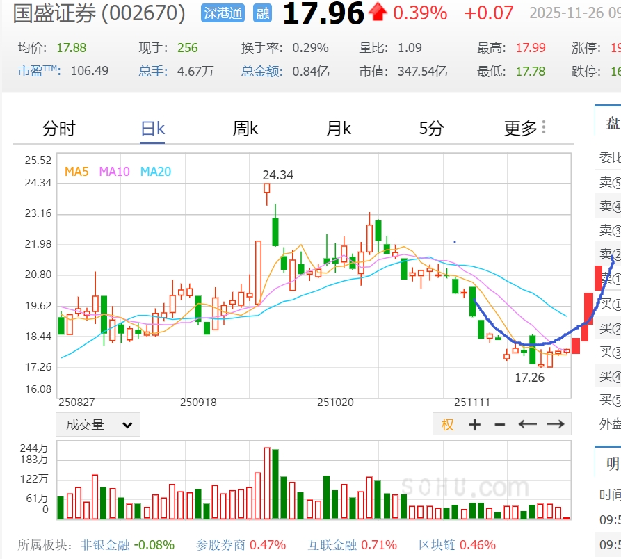 $国盛证券(SZ002670)$ U型底,尤其套在19左右的解套很快了,现在主力就是慢慢向上推,把一些没有耐心的套牢盘让你们割肉,然后就开始猛拉(这个图虽然会根据大盘会有点反复,但是未来基本的思路和操盘路线会基本正确)