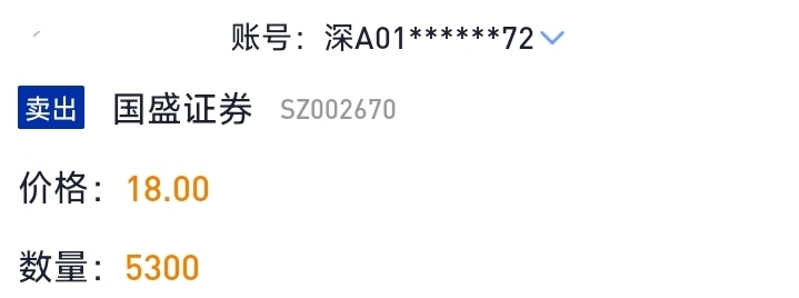 $国盛证券(SZ002670)$ 早上加仓5300股,高位卖掉5300股,现在成本比主力还低,中午转账三十万,折机加仓!(实盘)你们赚钱了,别感谢我,感谢主力!这个股是所有证券股风险最低,期望最高的股票,!