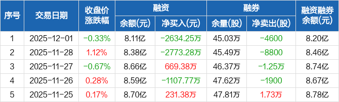 国盛证券:融资净偿还2634.25万元,融资余额8.11亿元(12-01)