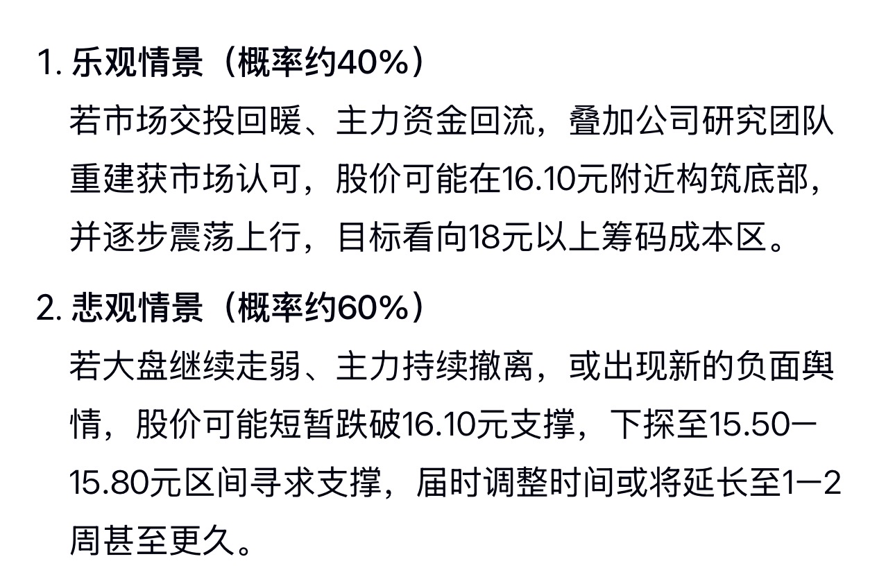 如果跌破16.10,还会继续下跌,下一步就是跌到15.50。