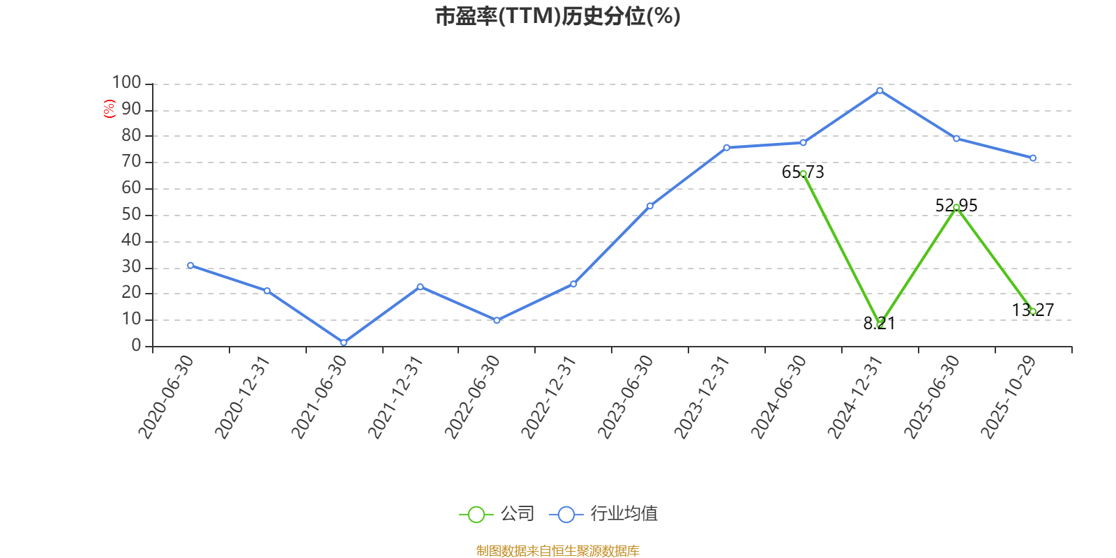 市盈率、市净率为负时,不显示当期分位数,会导致折线图中断。
