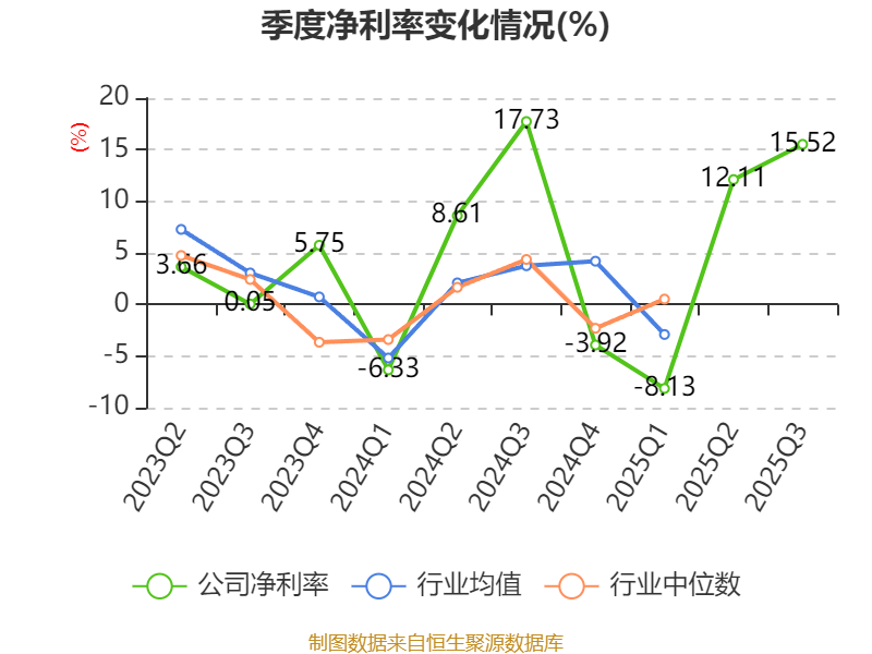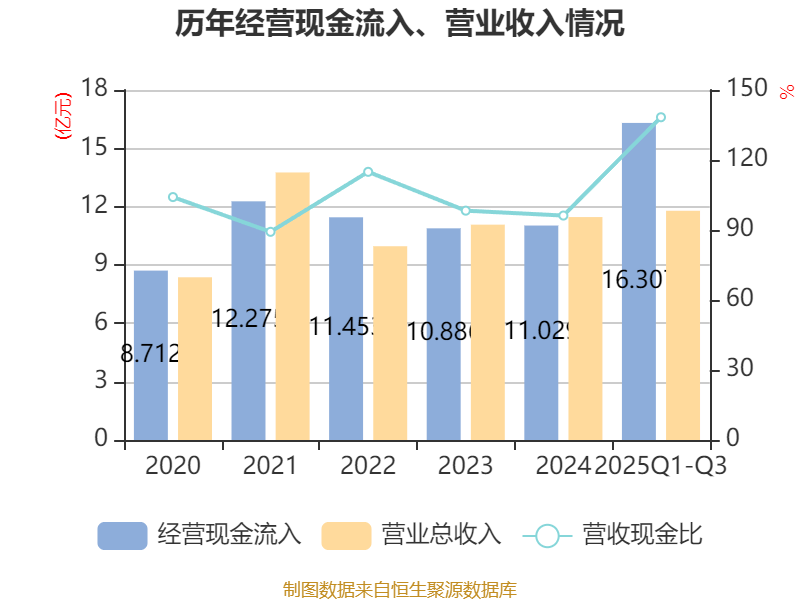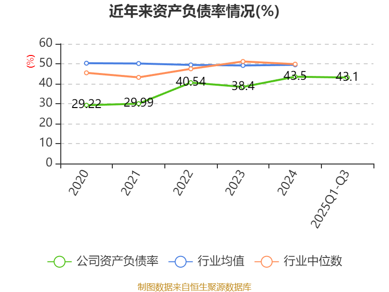 资产重大变化方面,截至2025年三季度末,公司货币资金较上年末减少33.25%,占公司总资产比重下降8.62个百分点;应收票据及应收账款较上年末增加46.41%,占公司总资产比重上升8.28个百分点;其他非流动资产较上年末减少68.93%,占公司总资产比重下降2.23个百分点;在建工程合计较上年末减少93.03%,占公司总资产比重下降2.06个百分点。