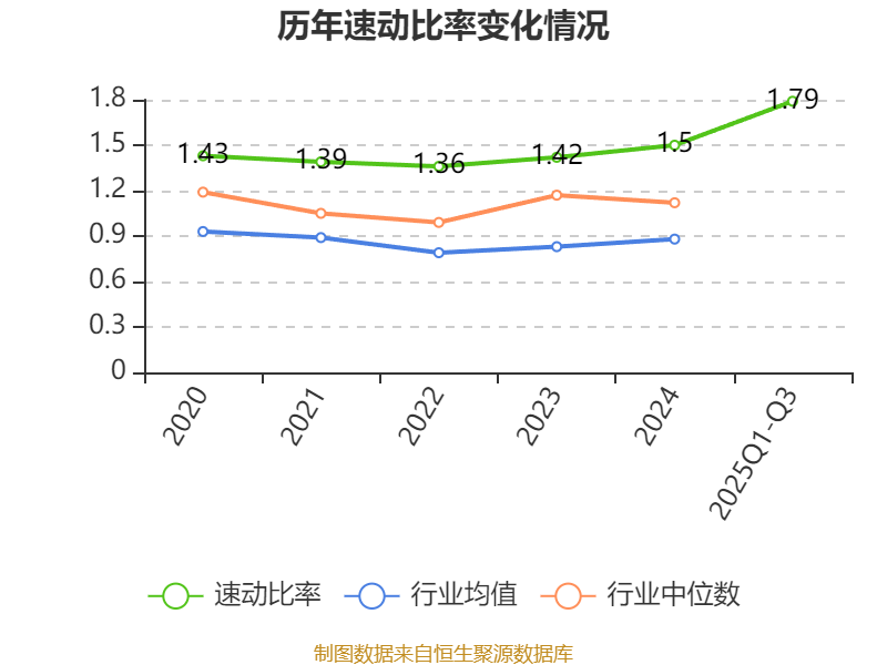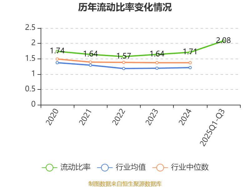 2025年前三季度,公司流动比率为2.08,速动比率为1.79。