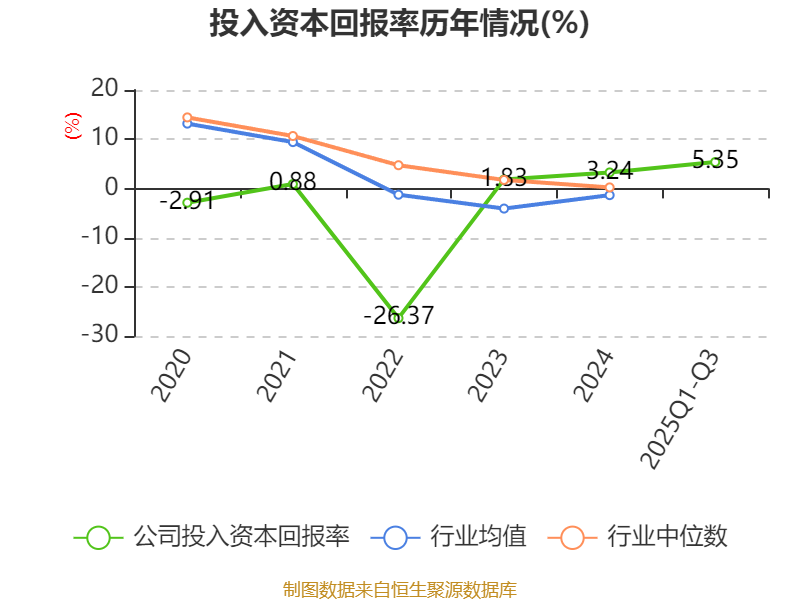 盈利能力方面, 2025年前三季度公司加权平均净资产收益率为7.1%,同比上升2.28个百分点。公司2025年前三季度投入资本回报率为5.35%,较上年同期上升1.16个百分点。